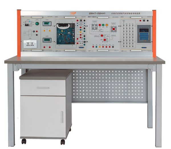装置以分体立柜式空调的电气控制电路作为实训对象,可实现对空调的控制功能。本装置提供了遥控器、与实际相符的电路板模块、电源模块、连接线等组件,可组成分体立柜式空调的控制系统。适合大专及高职院校制冷及相关业的《制冷设备原理及维修》等课程的教学及实训。